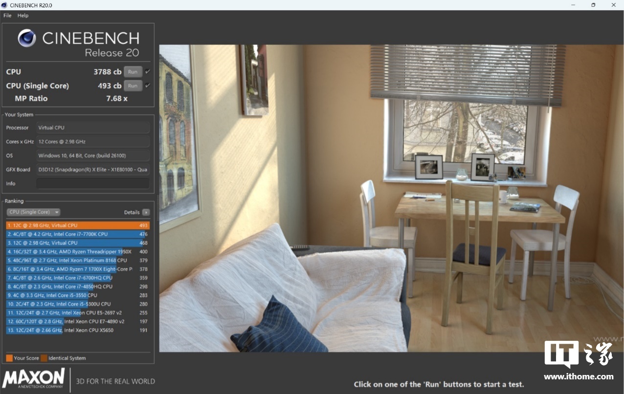 最新的 Cinebench 2024 已经原生适配 ARM 架构,可以体现处理器在面对 Cinema4D 渲染时的性能。