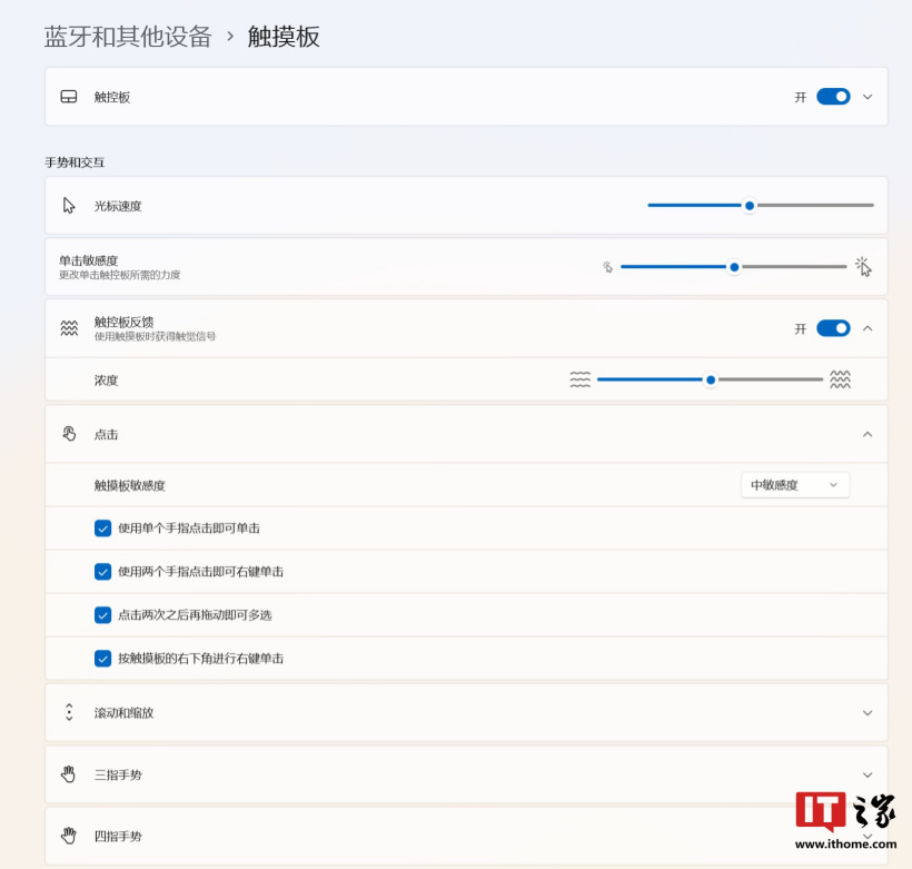 微软也支持用户在系统设置中调节触摸板反馈的强度,总体来说这块触摸板的震感反馈有力,定位感明显,并没有松散感。