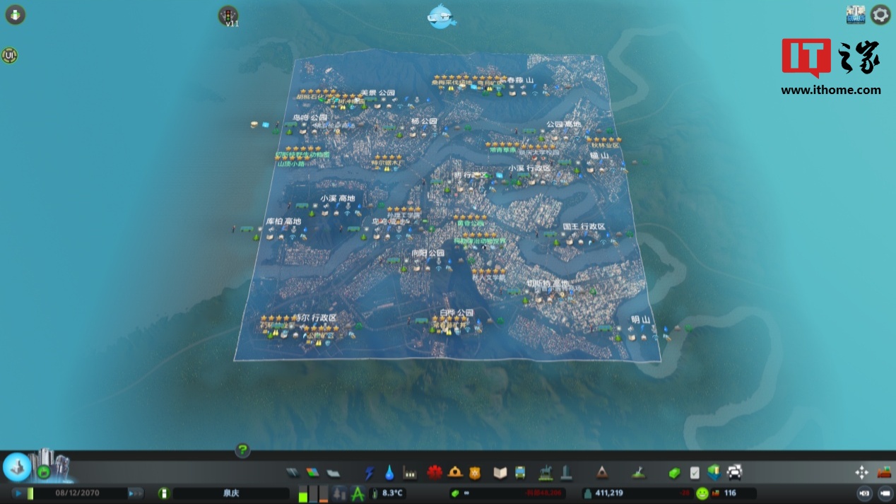 在《都市:天际线》中,加载一个 40 万人口、上千资产及 Mod 的存档也没有出现兼容性问题,游戏帧率大致在 20-30fps 之前浮动,对于这样一款游戏已经相当可玩了。