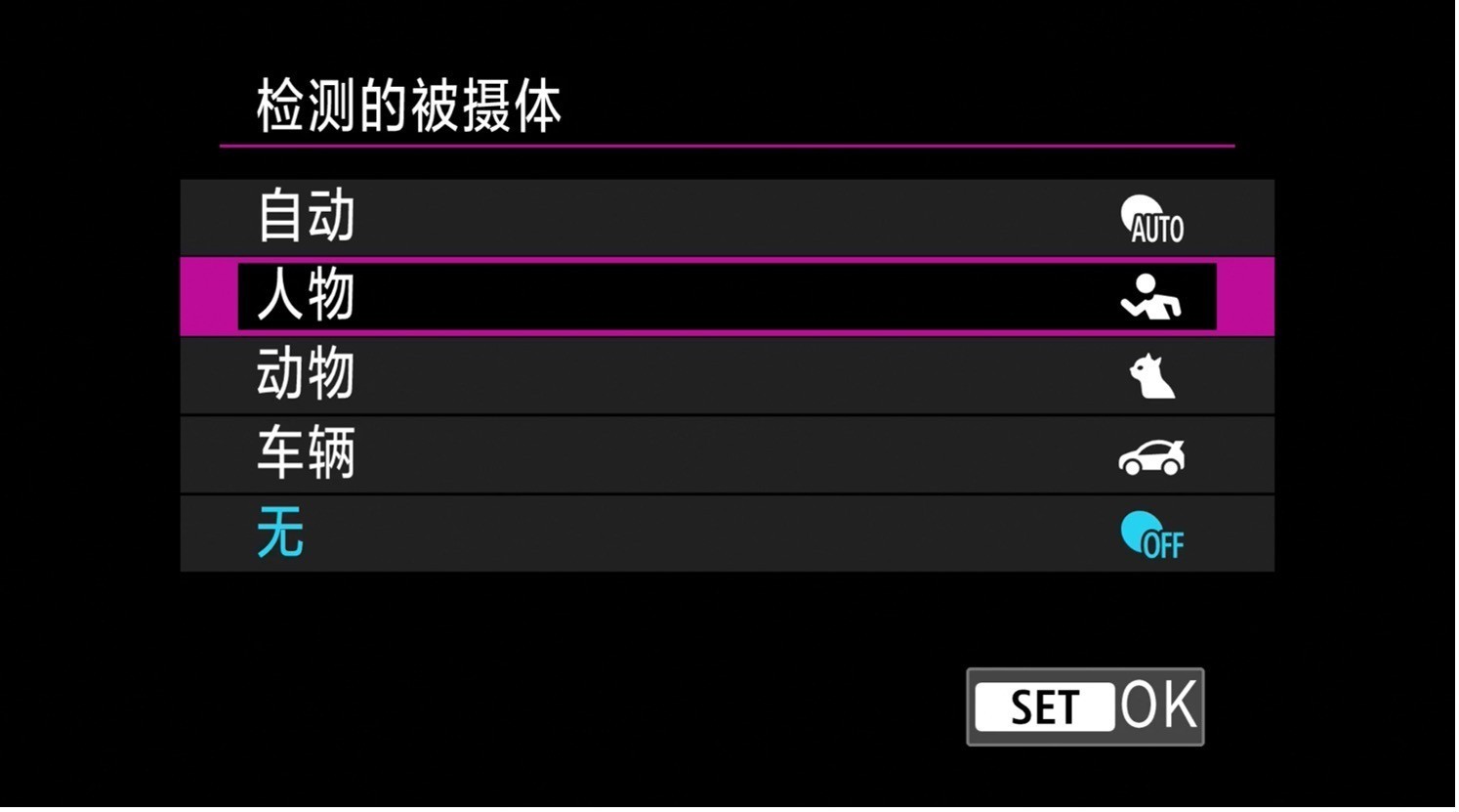 在对焦提升上,这台相机首先采用了与EOS R6 Mark II相同的对焦识别类型。像上一代机身虽然对于人物、鸟类识别很到位,但是不具有飞机、马匹等识别。这台相机具有了全部的识别类型。