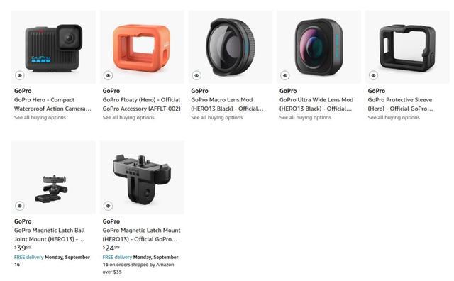 IT之家 8 月 16 日消息,科技媒体 TechstoriesIndia 今天(8 月 16 日)发布博文,报道称 GoPro Hero 13 Black 的相关配件已经现身美国亚马逊,并有消息称该运动相机将于 9 月 16 日发布。