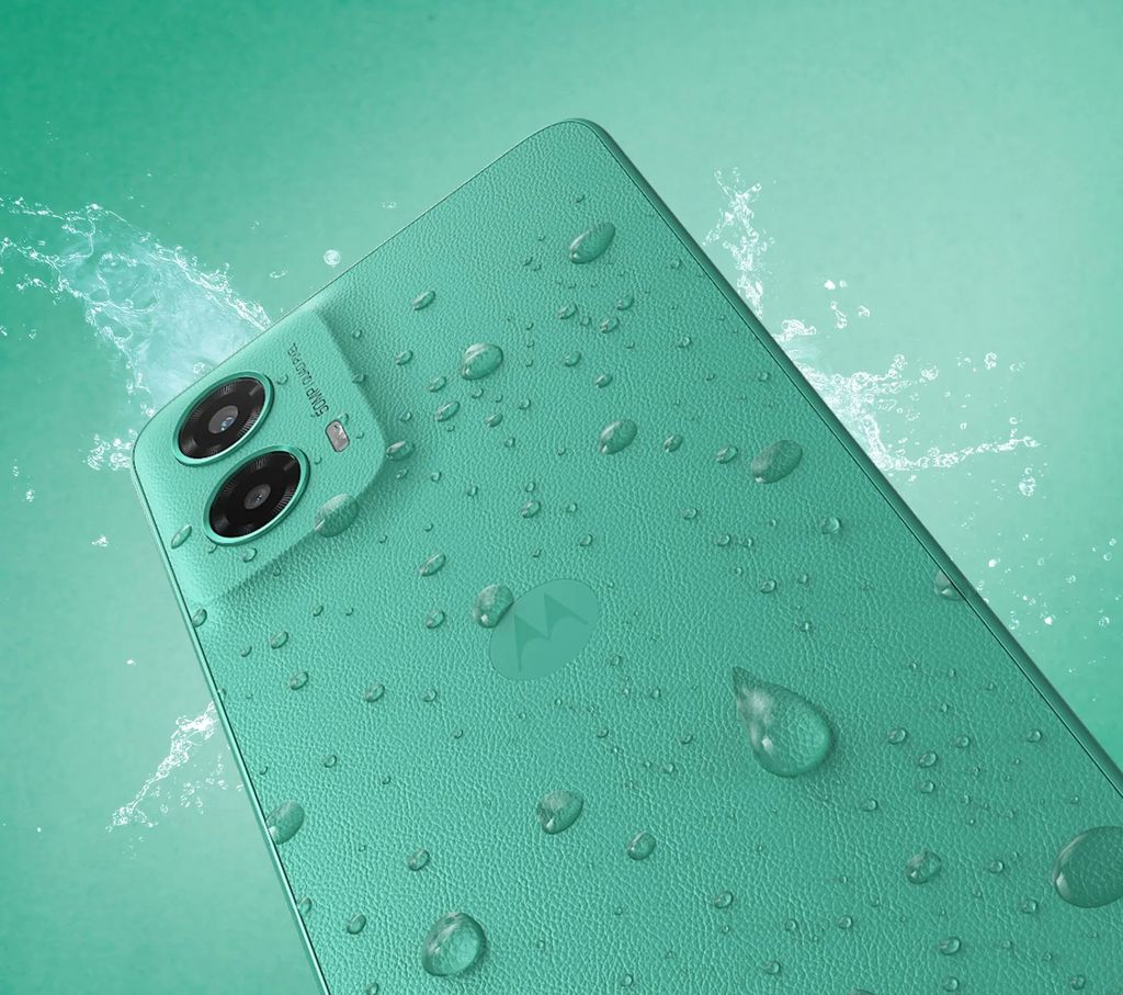 Moto G45 5G 的三种配色都采用了素食皮革后壳。后面板左上方是双摄像头,位于一个略微凸起的矩形平台上,而公司的品牌标志则位于中央。