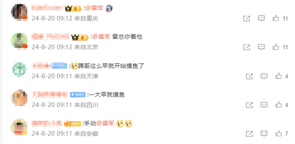 有网友表示:“懂了,给产品做性能测试”“腾总怎么玩的是WeGame版”,还有调皮的网友在评论区@雷军,说腾总上班摸猿。