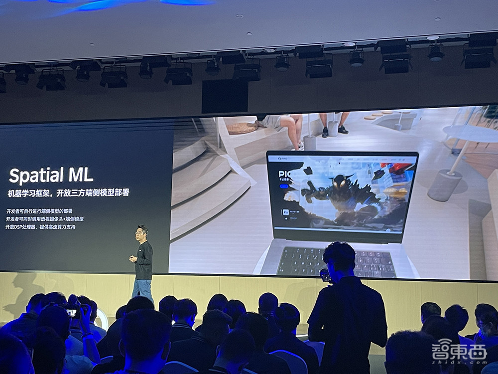 还有一个重磅更新是Spatial ML机器学习框架开发者可以把自己开发的模型部署到PICO 4 Ultra上,并可同时调用透视摄像头+端侧模型,实现一些有趣的效果。