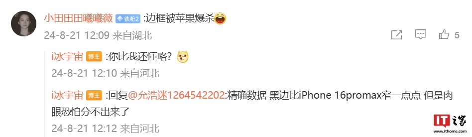 博主在评论区透露,精确数据来看三星 S25 Ultra 黑边比 iPhone 16 Pro Max“窄一点点”,到了肉眼难以分辨的地步。