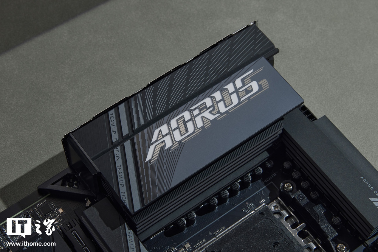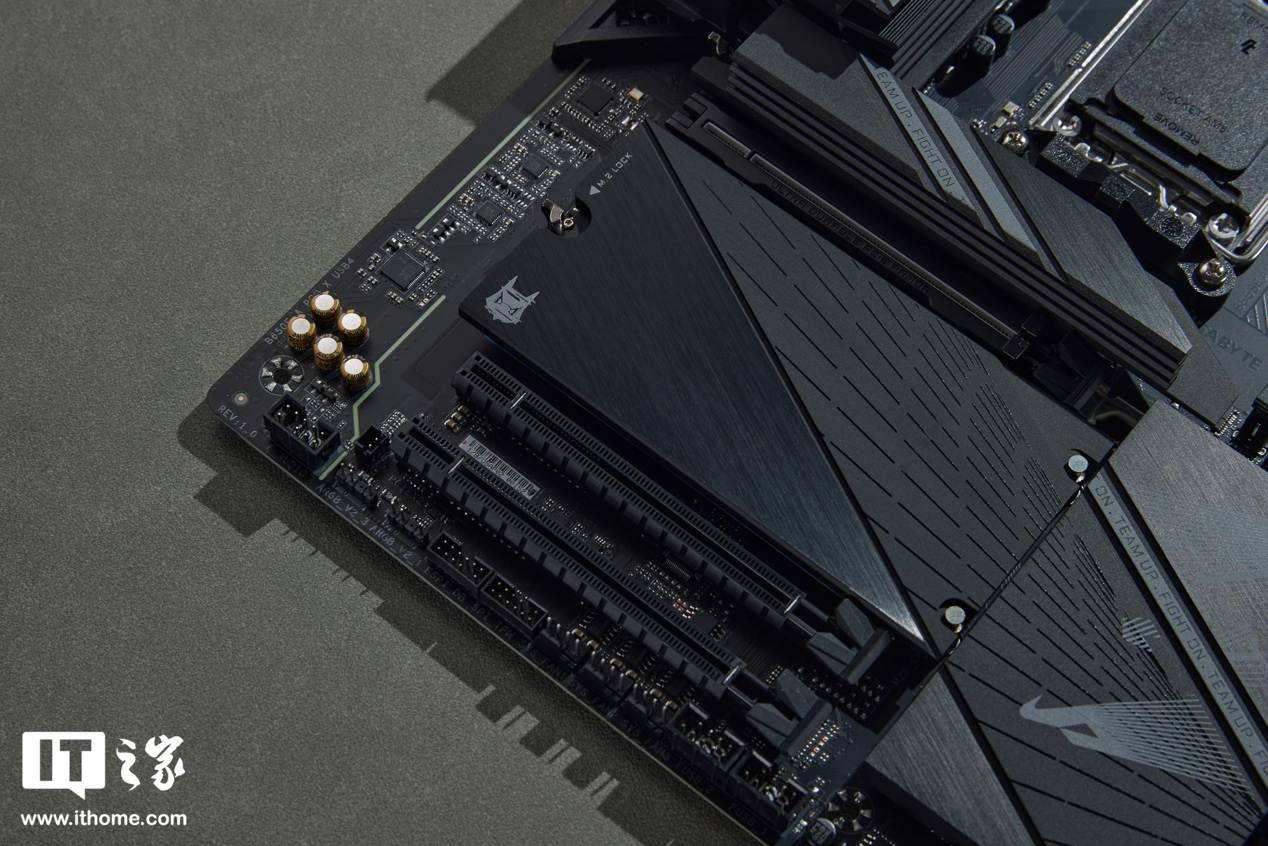当然,主要部件区域大面积且厚实的散热装甲覆盖,向来是技嘉主板“堆料”风格的一部分,它们不仅确保了主板的散热性能,在视觉上也起到了美观和提升一体性的作用。