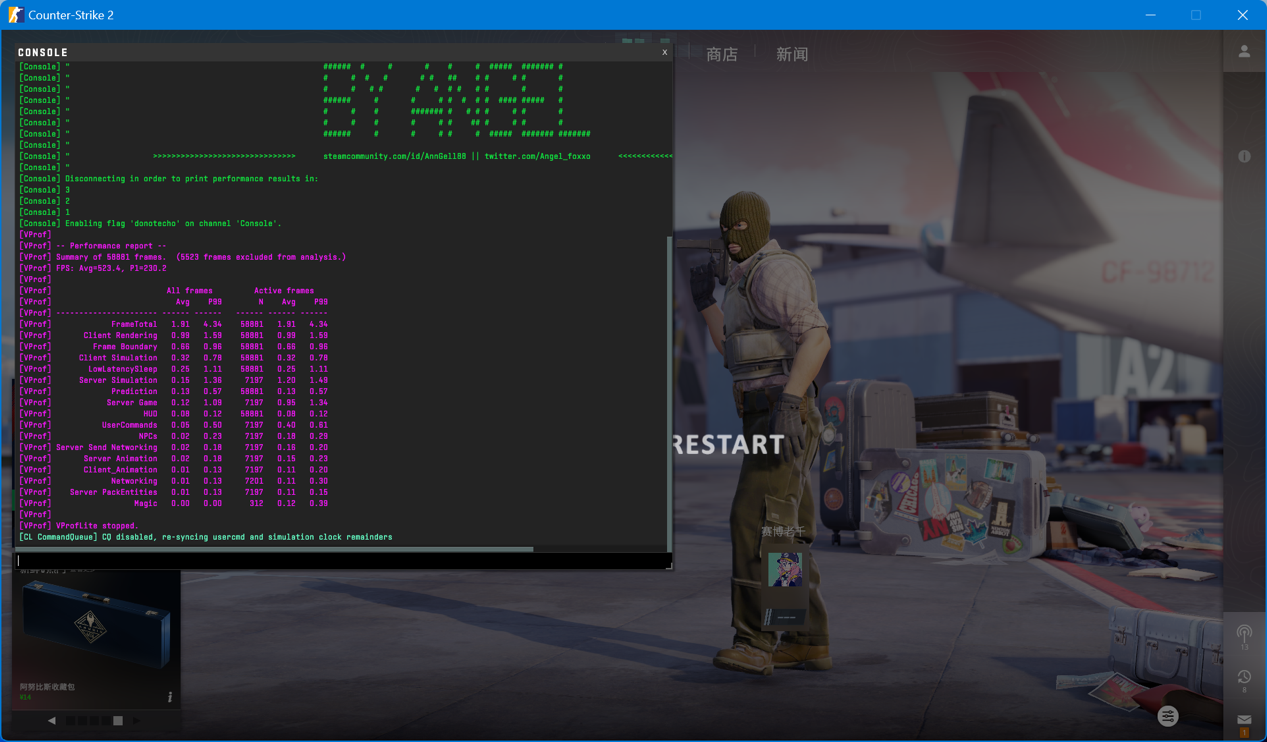 首先是在线竞技游戏《CS2》,我们通过创意工坊地图 dust2 Benchmark 地图进行测试,锐龙 9 9900X 的游戏平均帧数为 523 帧,1% Low 帧为 230 帧,游戏体验流畅丝滑。
