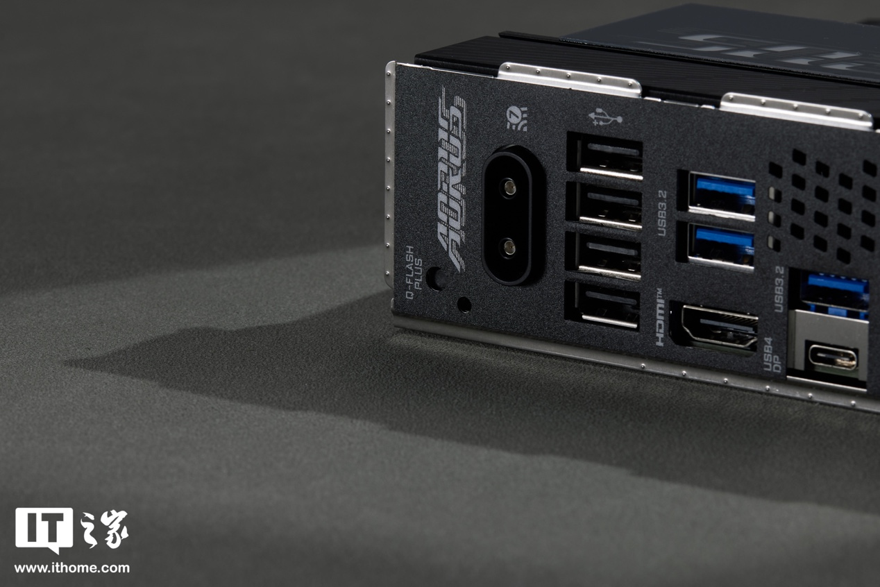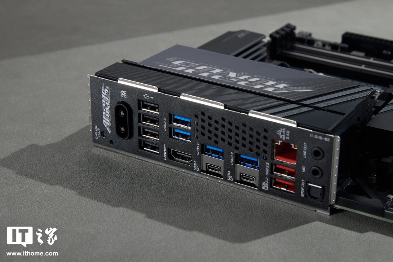 在 2 个 USB4 Type-C 接口周围,技嘉还做了一圈铝合金加固处理,接口配置全面均衡。