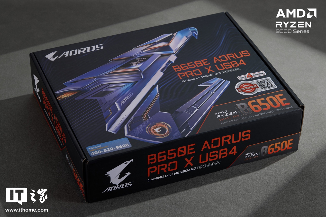 今年 7 月,为迎接 AMD 锐龙 9000 系列处理器的到来,技嘉推出了一款全新 B650E 主板。其自带 2 个满血 USB4 协议 Type-C 接口以及一系列功能实用性上的改善升级,它就是技嘉 B650E AORUS PRO X USB4 主板(以下简称技嘉 B650E 电竞雕 USB4)。这款新品的表现究竟如何?接下来就跟着IT之家一起来看看吧。