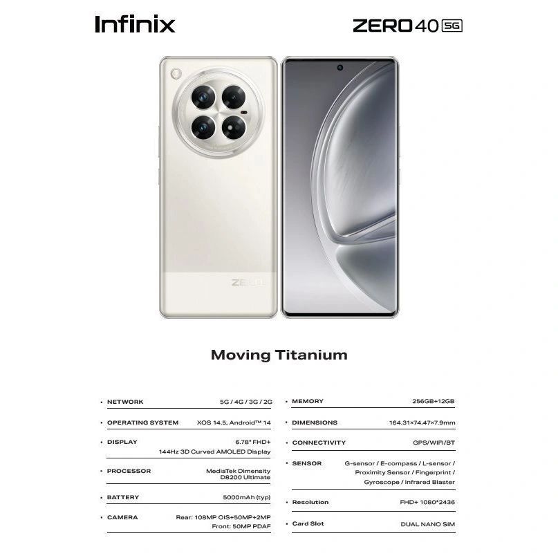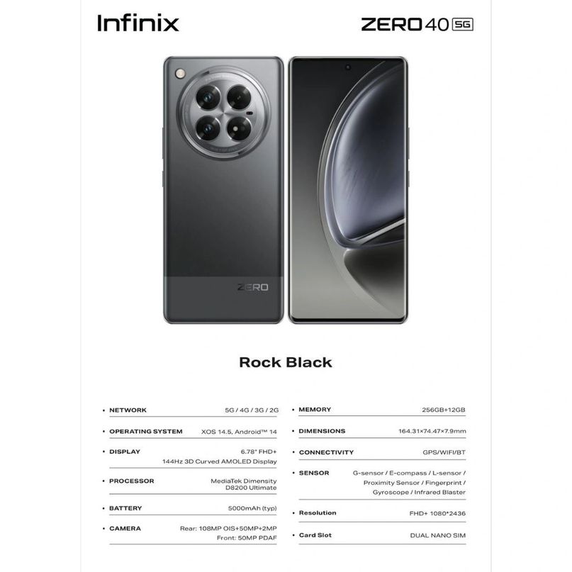 文章来源于互联网:IT之家-传音 Infinix Zero 40 手机曝光:联发科天玑 8200 Ultimate 芯片、1.08 亿主摄、5000mAh 电池