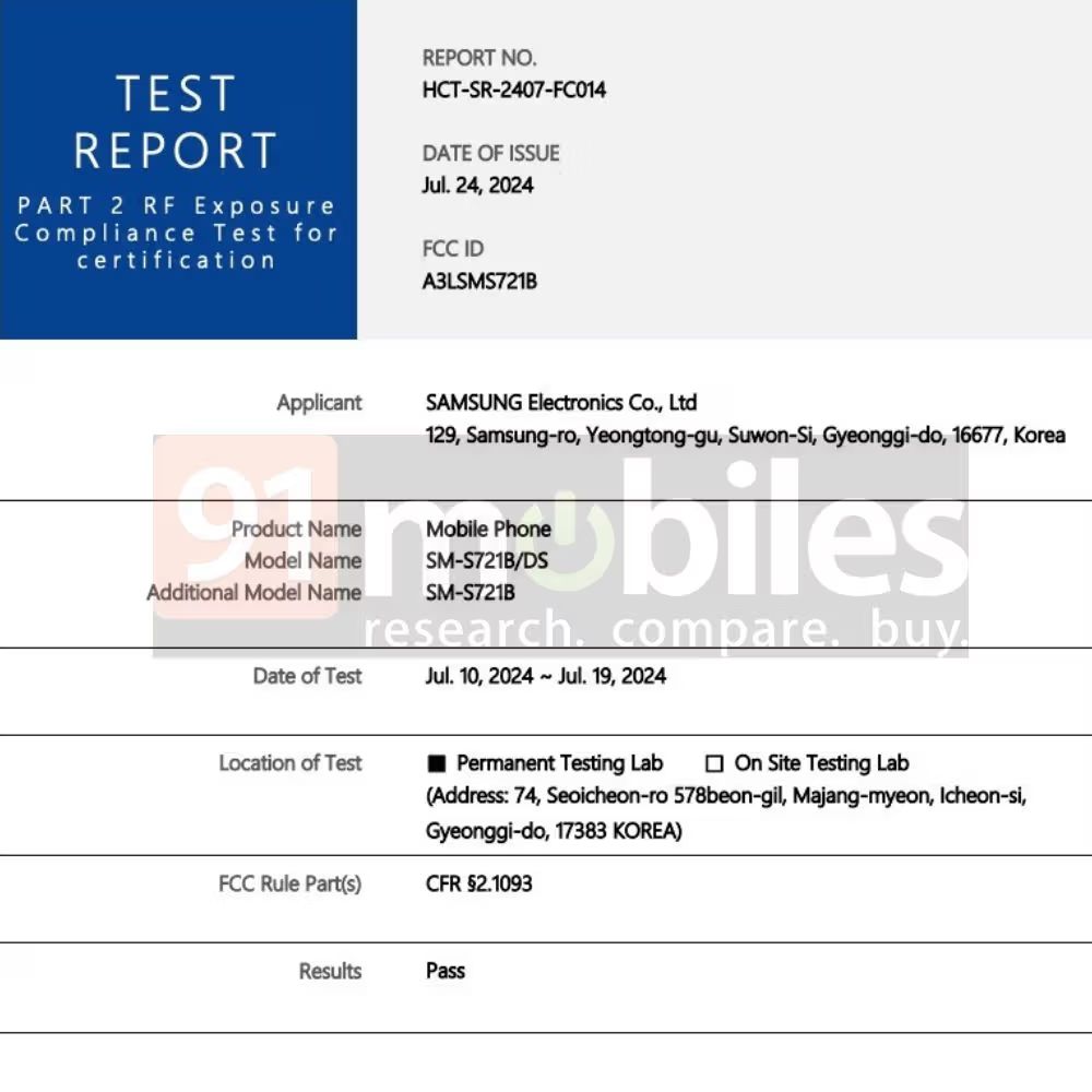 IT之家 8 月 24 日消息,科技媒体 91Mobile 昨日(8 月 23 日)发布博文,表示在 FCC 机构发现了三星 Galaxy S24 FE 手机的身影,型号为 SM-S721B / DS。