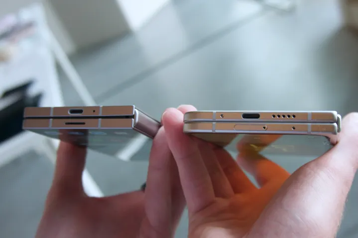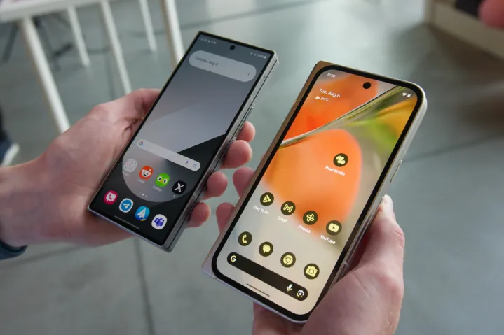 三星的铰链设计紧凑,手机可以保持在你想要的角度。谷歌的折叠手机采用了改进的铰链机制,现在可以平放在桌面上。与 Pixel 9 Pro Fold 的初步体验相符,打开手机的过程比以前更为顺畅。