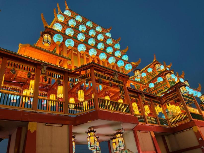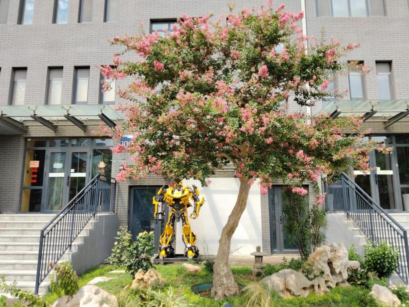 下面这张是在中午烈日下拍摄的,画面整体曝光非常充足,色彩依旧是偏艳丽的,后面大黄蜂雕塑的局部稍微有些过曝的倾向,倒也能反映出中午阳光热烈的感觉。