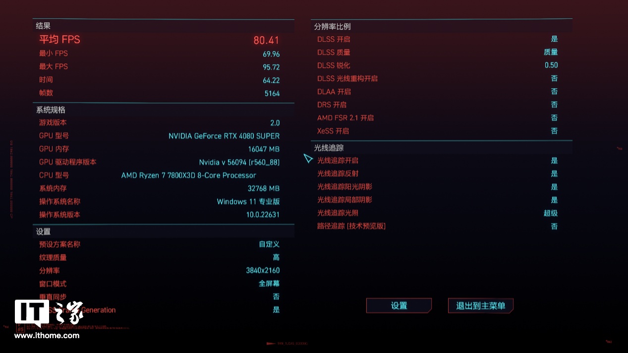 路径跟踪功能非常依赖 RTX 40 系列显卡硬件所搭载的 DLSS 3 AI 渲染加速技术,它不仅能够实时处理游戏中的光线效果,也会通过 AI 补帧提升游戏的性能表现,让原本无法流畅的帧数表现得到质的提升。