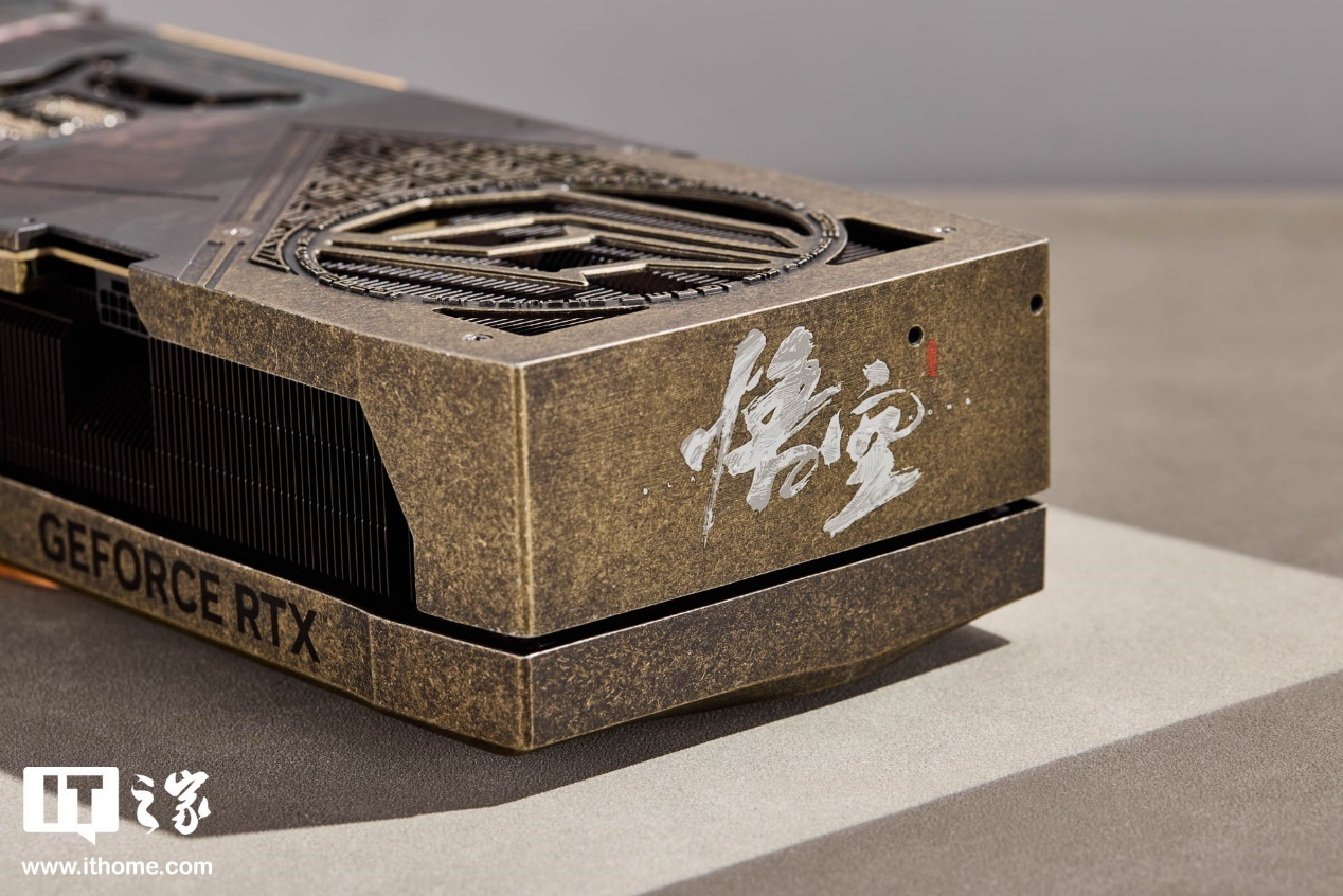 iGame RTX 4080 SUPER Advanced 黑神话悟空定制显卡外侧印着与游戏字体高度吻合的“悟空”二字,白色文字与书法体的结合,彰显出大圣豪放不羁的气质。