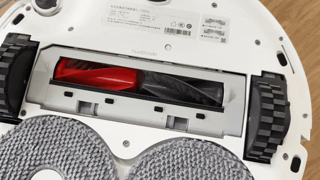 如下图所示,清洁盘内部配备了“雨刷”结构,当启动时,它能够像汽车上的雨刷一样,彻底清理掉清洁盘底部及其缝隙中的污垢。这一机制确保了清洁盘的持续洁净,有效避免了拖布可能产生的二次污染问题。