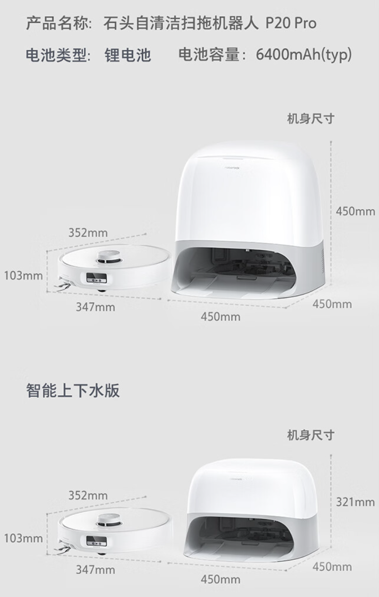 没想到的是短短半年之后,石头科技又带来另一款神机 —— 石头 P20 Pro。新机的预售价依旧是 3999 元起,相较于前代产品,石头 P20 Pro 带来了更大的吸力、更强的越障能力、全新的外观设计、还有 AI 大模型、全新设计的边刷主刷等等。