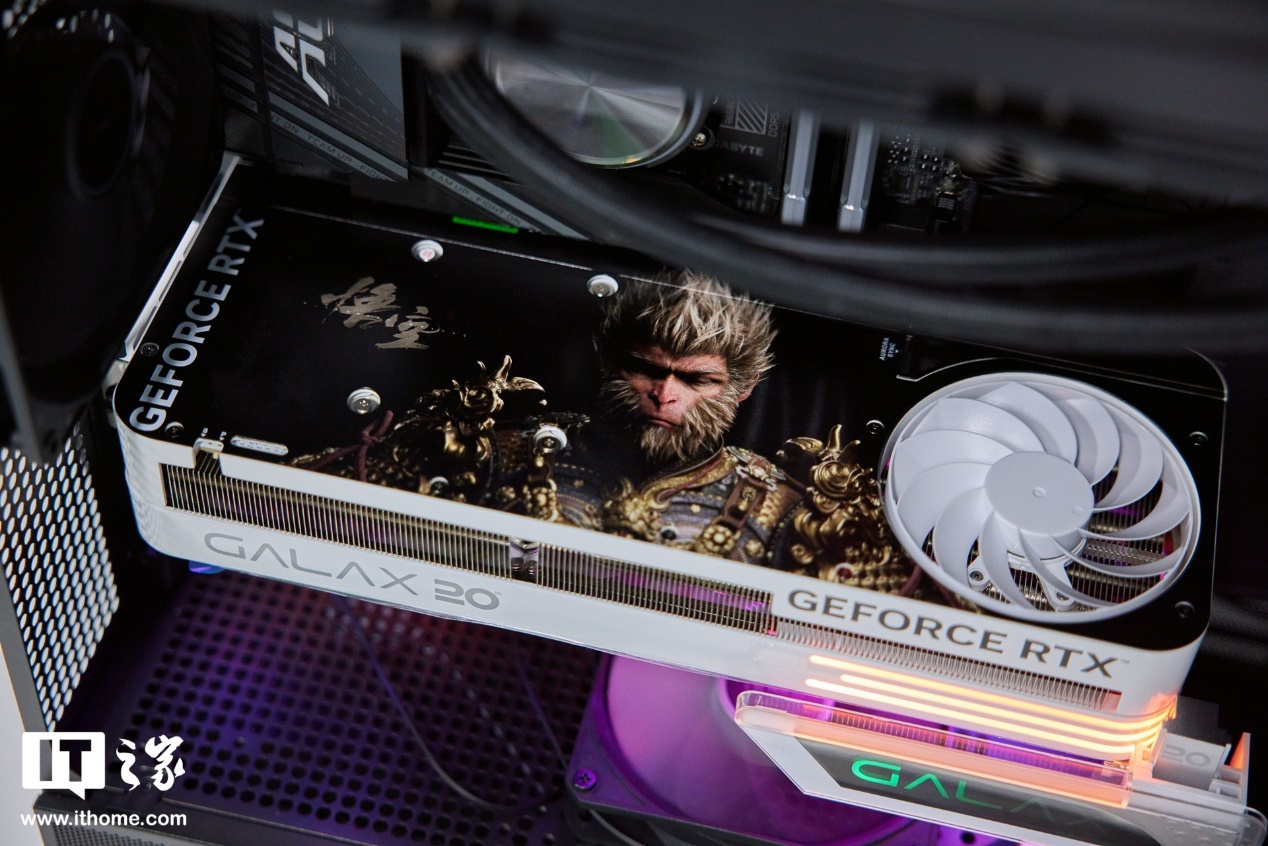 文章来源于互联网:IT之家-【IT之家开箱】影驰 Geforce RTX 4070 Ti SUPER 特别纪念版显卡图赏:大圣当袈裟,灯效玩出花