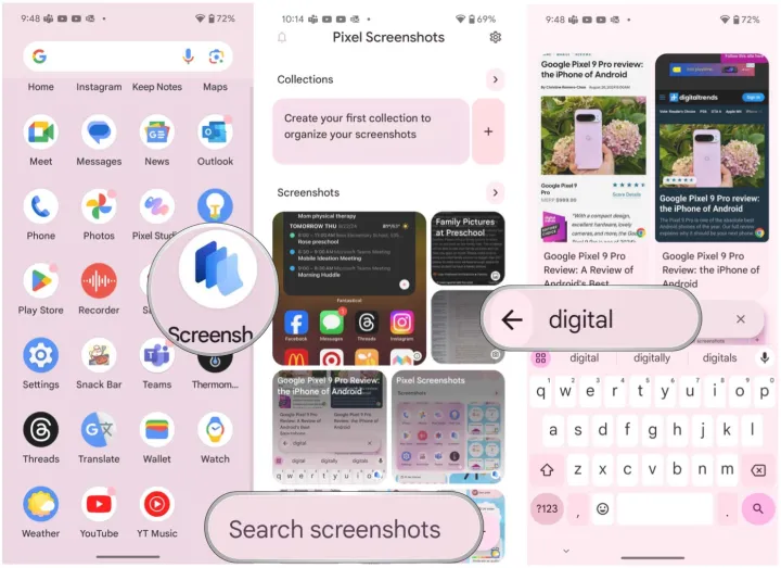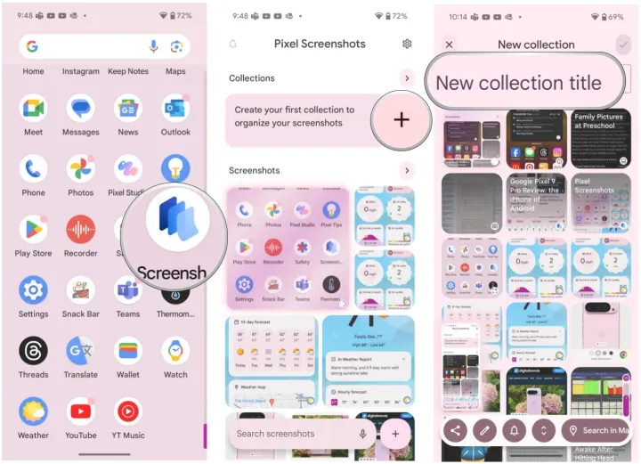 步骤 1:在Pixel 9设备上启动Screenshots应用。