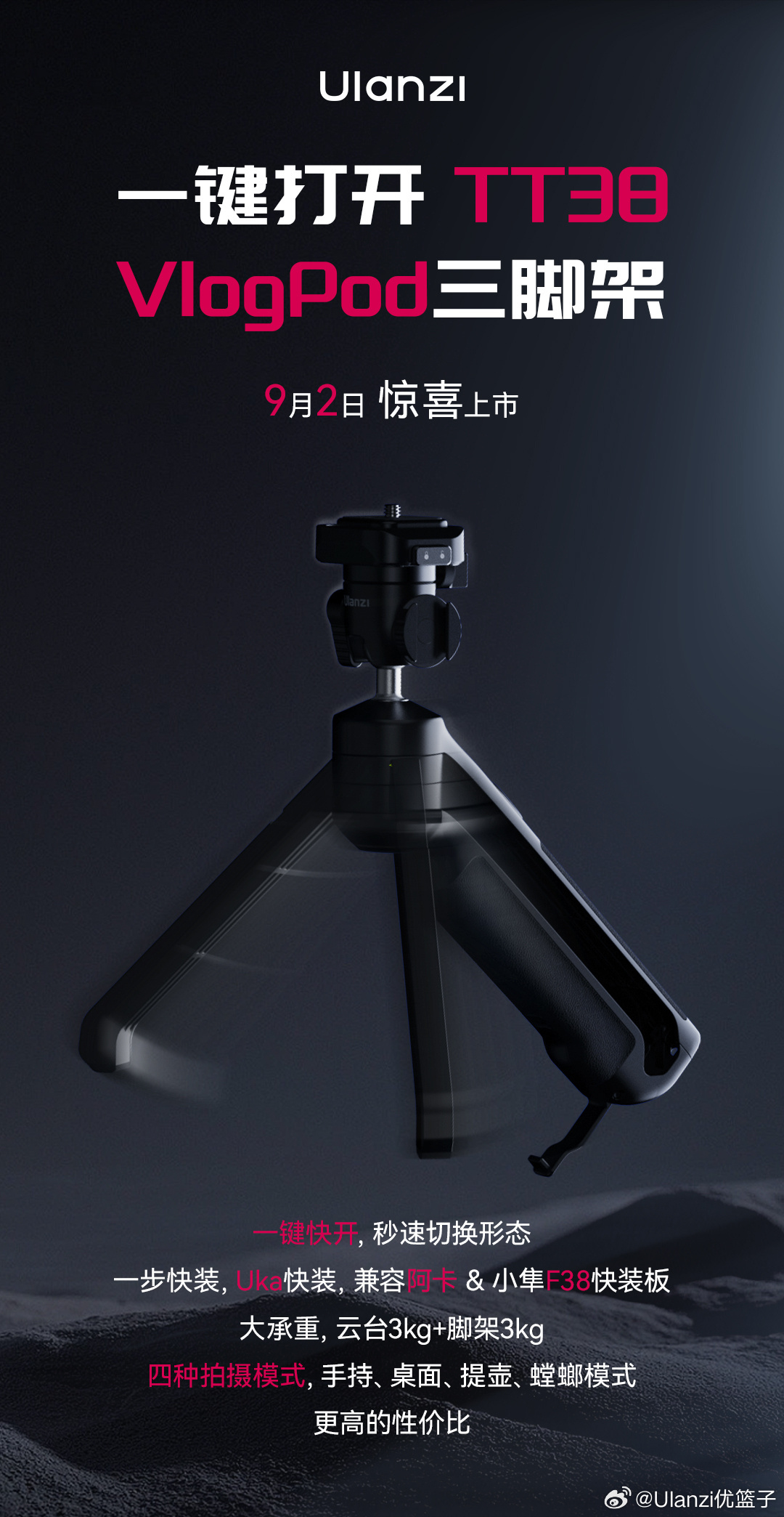 文章来源于互联网:凤凰网-优篮子TT38 VlogPod三脚架明日上市:一键快开、四种拍摄模式