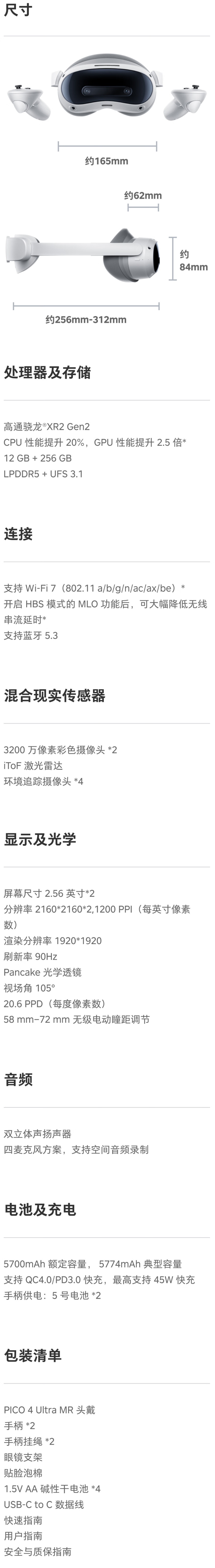 PICO 4 Ultra MR 混合现实一体机今日 10:00 正式开售,售价 4299 元(12GB+256GB),IT之家附参数表如下: