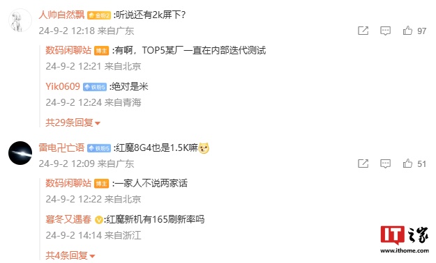 博主在评论区中回复网友称,2K 屏下方案“TOP5 某厂一直在内部迭代测试”,同时红魔 8 Gen4 处理器新机也有望搭载 1.5K 屏下前摄方案。