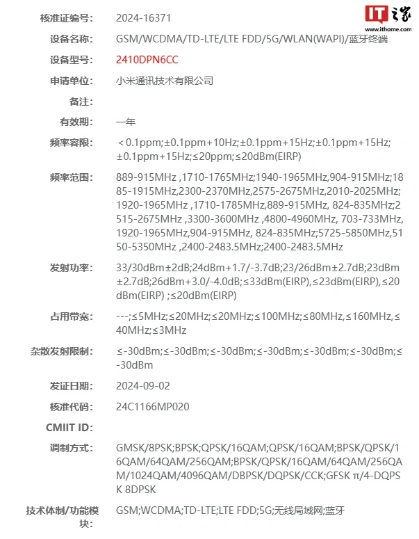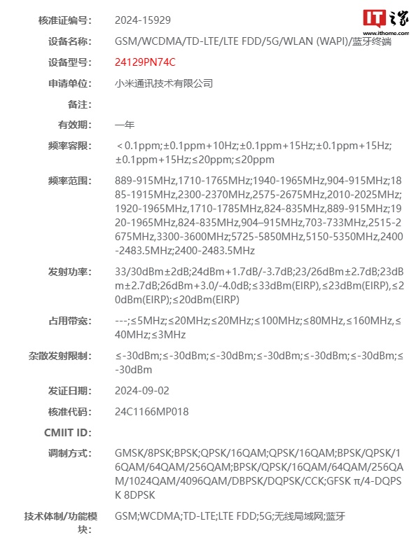 IT之家 9 月 2 日消息,今日,有 24129PN74C、2410DPN6CC 两款新机通过了国内无线电核准,据博主 @数码闲聊站 透露新机为小米 15 系列。