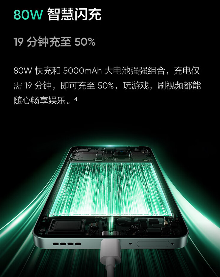 IT之家注意到,该手机搭载 50MP 索尼 LYT-600 OIS 主摄 + 200 万人像相机,前置 16MP 自拍相机,机身厚度约 7.6mm,官方称“真我最轻薄手机”,该手机配备 5000mAh 电池,支持 80W 闪充,19 分钟可“回血 50%”。