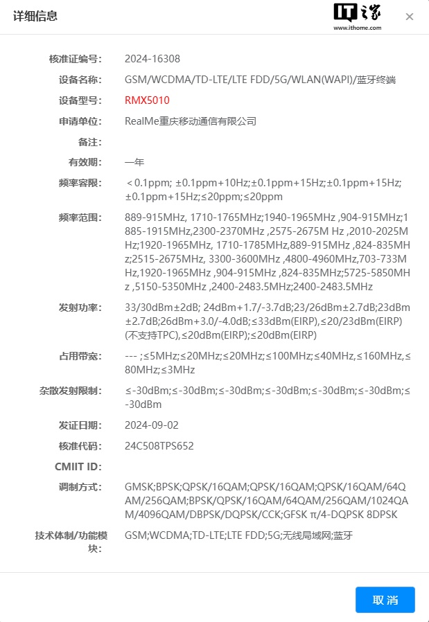 IT之家 9 月 3 日消息,昨日有一款型号为 RMX5010 的 realme 新机通过了无线电核准认证。参考最近 IMEI 数据库的信息,这款机型可能就是真我 GT7 Pro。realme 中国区总裁徐起曾表示,今年年底将把 GT7 Pro 推向全球市场。
