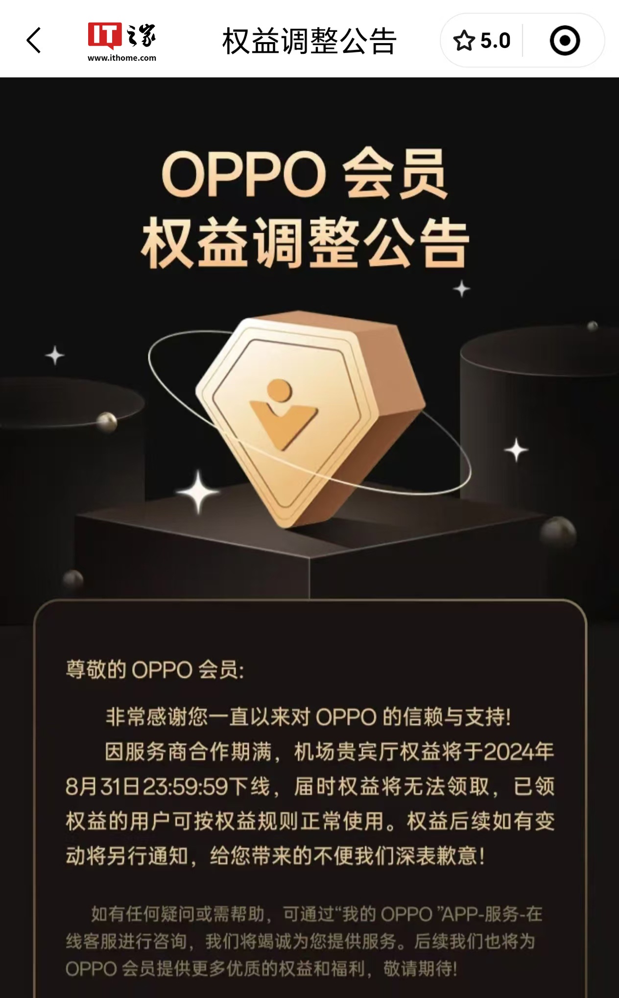 文章来源于互联网:IT之家-OPPO&一加钻卡会员机场贵宾厅权益下线,符合条件用户可领充电年卡、云空间、积分补偿
