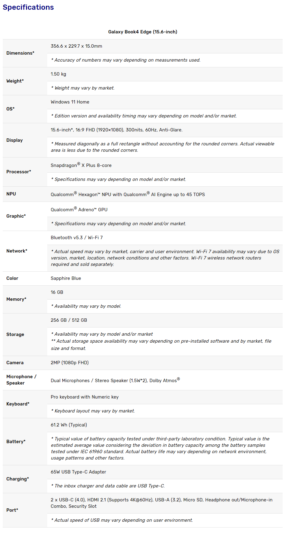 文章来源于互联网:凤凰网-三星发布15英寸Galaxy Book4 Edge笔记本,搭载骁龙X Plus八核芯片