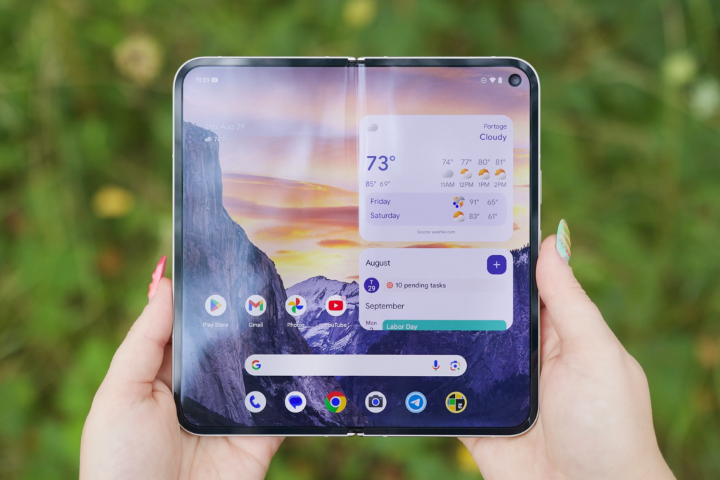 在软件方面,Pixel 9 Pro Fold 的表现大致良好。Pixel Android 界面依旧优秀,新的 Pixel Weather 应用和 Pixel Screenshots 应用表现出色。但在折叠手机的特定软件优化方面,尤其是多任务处理上,还有提升空间。尽管可以并排运行两个应用并调整大小,但缺乏更多的多任务功能,如浮动窗口、同时运行多个应用或固定任务栏。这与三星和 OnePlus 的多任务处理功能相比,略显不足。