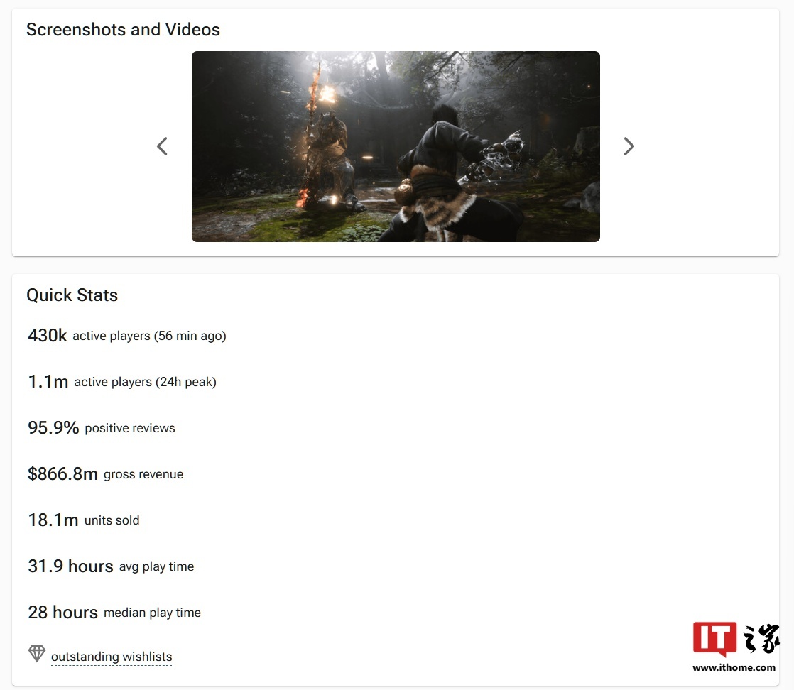 IT之家 9 月 5 日消息,市场研究机构 VG Insights 今天下午的数据显示,《黑神话:悟空》两周内卖出 1800 万套,销售金额约 8.67 亿美元(IT之家备注:当前约 61.65 亿元人民币)。