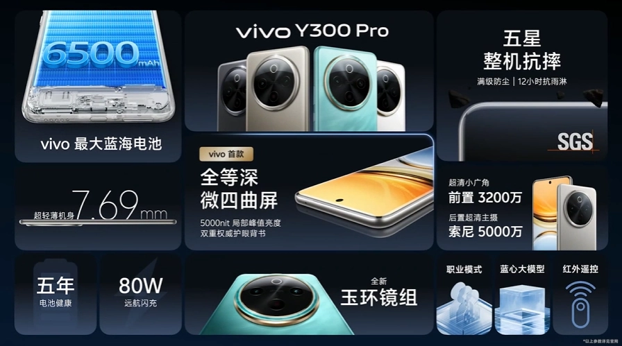 文章来源于互联网:IT之家-vivo Y300 Pro 手机发布:6500mAh 蓝海电池、四配色可选,售价 1799 元起