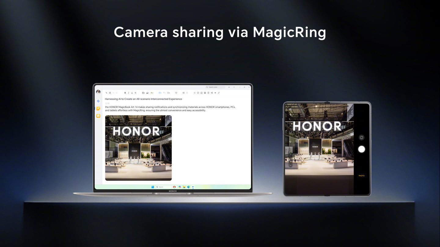 荣耀 MagicBook Art 14 骁龙版搭载荣耀智慧互联,基于荣耀 MagicOS 带来跨设备协同、多任务并发,实现内容跨设备无缝流转和互传。