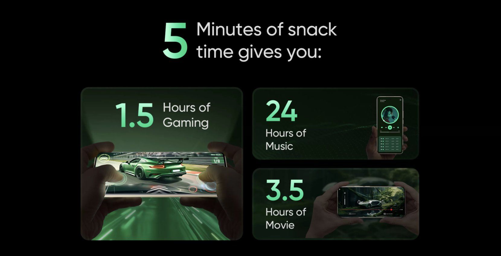 realme 还声称这将是该细分市场中首款提供 80W 超快充技术的智能手机,据称,该设备只需充电 5 分钟,即可提供 1.5 小时的游戏、24 小时的音乐或 3.5 小时的电影播放。