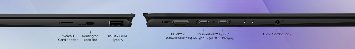 该机支持 WiFi 7 和蓝牙 5.4 技术,提供 2 个雷电 4 接口、1 个 USB-A 3.2 Gen 1 接口、1 个 HDMI 2.1 接口、1 个 TF 卡接口、1 个 3.5mm 耳麦插孔。