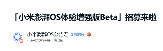 IT之家 9 月 13 日消息,小米社区今日发布公告,小米澎湃 OS 体验增强版 Beta 今日开启招募。