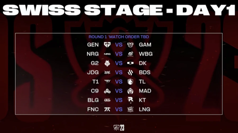 瑞士轮第一轮抽签结果现已公布。其中,来自 LPL 赛区的一号种子 JDG 将对阵一路从资格赛、入围赛杀出来的 LEC 四号种子 BDS;二号种子 BLG 对阵 LCK 三号种子 KT;三号种子 LNG 将对阵 LEC 二号种子 FNC;四号种子 WBG 对阵 LCS 一号种子 NRG。