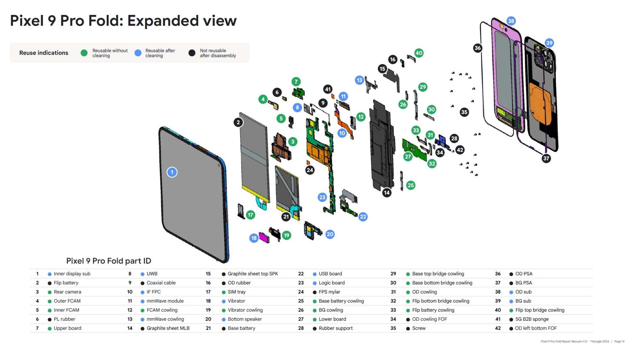 iFixt 团队在博文中表示,谷歌 Pixel 9 Pro Fold 折叠屏手机采用了模块化设计,内部全部采用 3IP 螺丝,包括 USB-C 端口和 SIM 卡托盘在内的诸多零件设计比较容易拆卸。