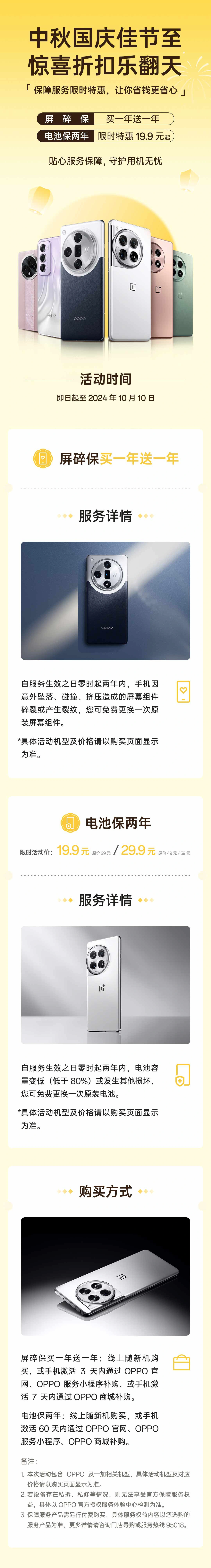 文章来源于互联网:IT之家-OPPO 即日起至今年 10 月 10 日开启保障服务限时优惠活动