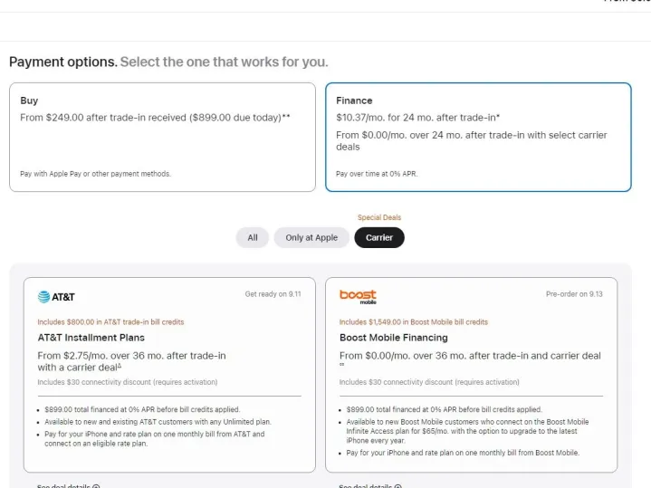 如果你没有手机可以换购,也不依赖于运营商,Boost Mobile是以较低价格预订iPhone 16或iPhone 16 Plus的最佳方式之一。