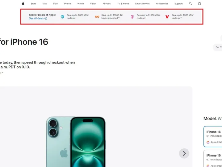 苹果的iPhone 16和iPhone 16 Plus运营商优惠 — AT&T、Verizon、T-Mobile