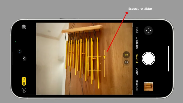 如果你手动调整曝光,可以拍出更好的照片。你可以在点击屏幕对焦后,通过黄色方块右侧的垂直滑块调整曝光。向上拖动滑块会增加曝光时间,从而增加iPhone拍摄照片的时间,即捕捉时间。相反,向下拖动滑块则会降低曝光,从而减少捕捉时间。