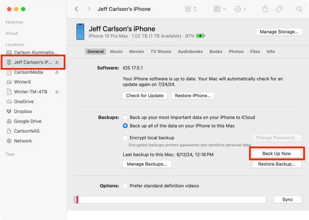 最重要的是,在开始安装iOS 18 Beta之前,确保您不仅拥有良好的iPhone数据备份,而且要制作正确类型的备份。请按照以下步骤操作,以确保在决定恢复到iOS 17时不会丢失任何数据。
