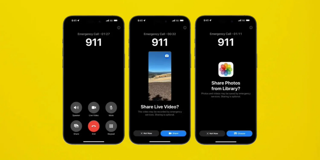 在用户拨打紧急电话时,接线员可以向其发送视频分享请求,用户可以选择接受或拒绝。苹果表示,该功能将通过安全连接传输视频和照片,确保用户隐私和数据安全。