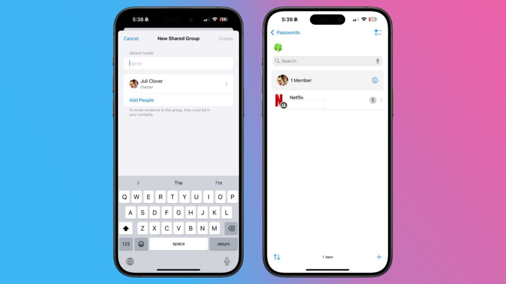 可以通过点击密码主界面左侧的文件夹来创建群组。输入名称,然后选择要添加的人员。请注意,您添加的任何人都必须位于您的联系人列表中。