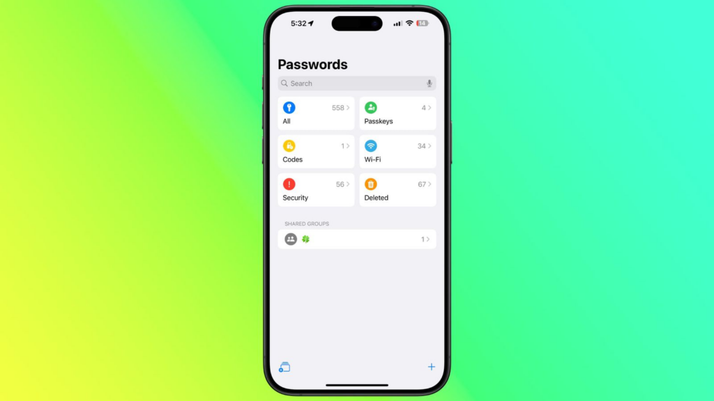 密码应用程序的布局与您在 iOS 18 中的设置应用程序的密码部分中看到的布局类似。