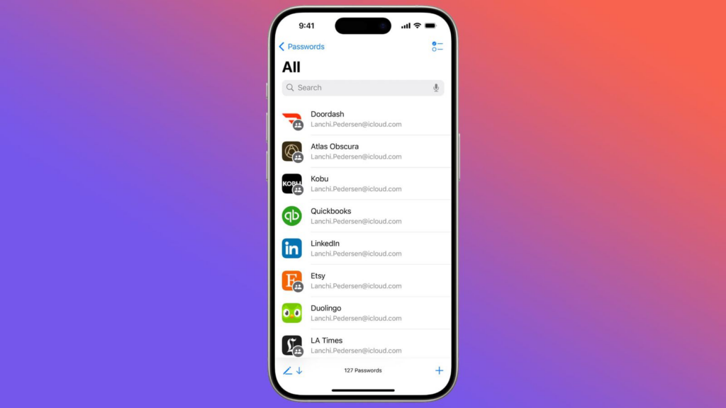 升级到 iOS 18、 iPadOS 18或macOS Sequoia时,密码应用会自动安装。该应用布局简单,顶部有一个搜索栏,方便您查找所需信息。