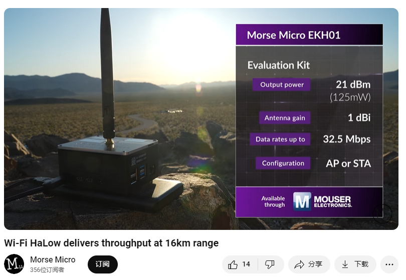 文章来源于互联网:IT之家-打破世界纪录:Morse Micro 使用 HaLow / 802.11ah 标准实现 15.9 公里 Wi-Fi 覆盖